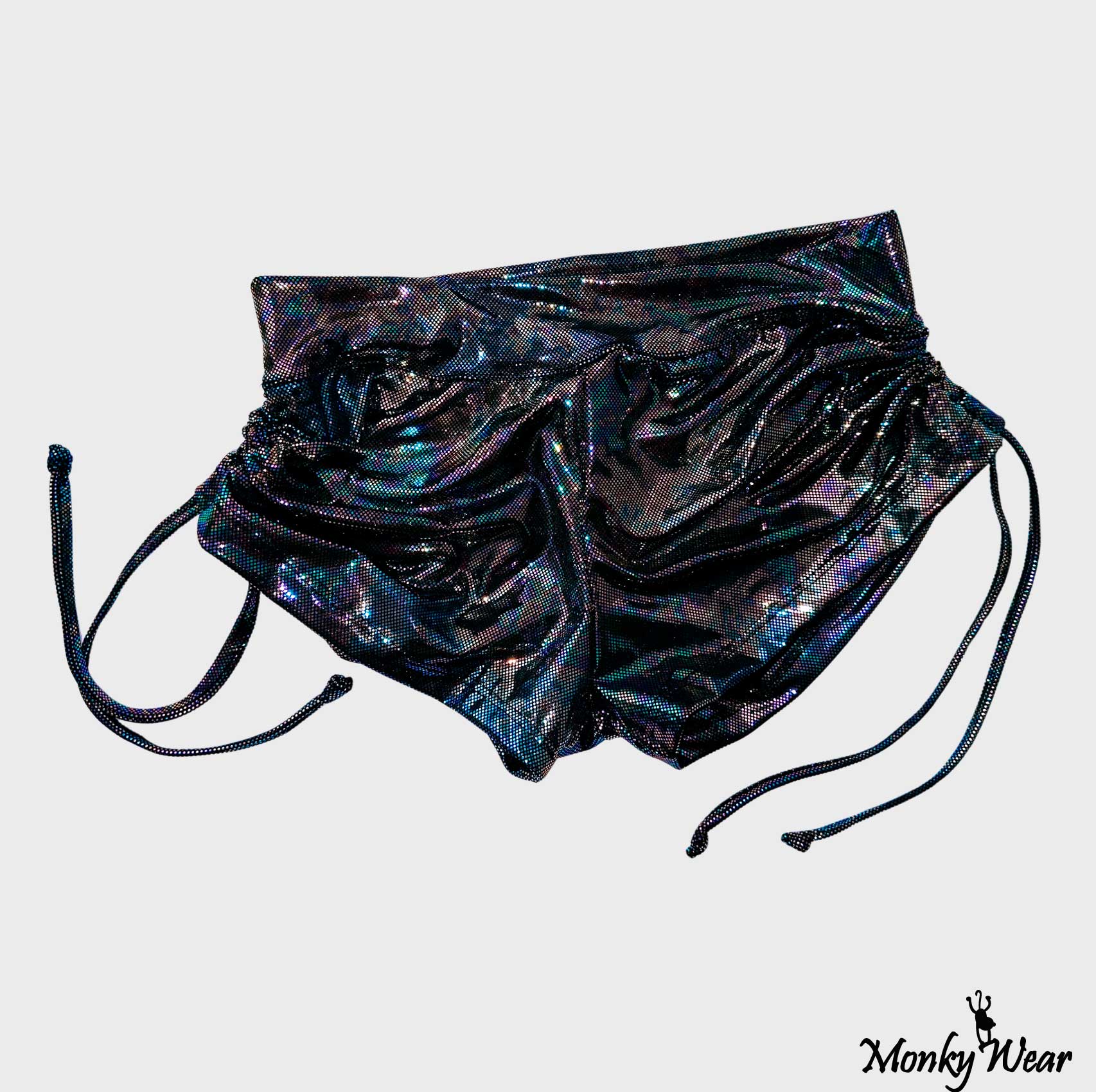 Short fabricado en lycra de importación coreana con aplicaciones en brillo holográfico en la parte superior.